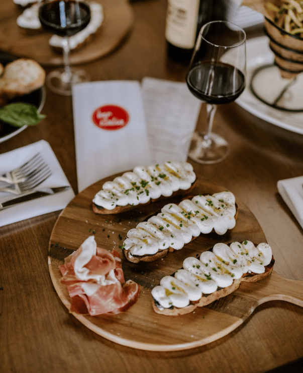 The Happy Hour Deals Are Unreasonably Good $8 wine? $2 off drafts and High Noons? Cocktails and hefty apps for 7-10 bucks? It’s basically financial planning disguised as dinner. Jodie and I always start with the crostini loaded with bruschetta and fresh mozzarella, but the house-made meatballs and prosciutto with whipped ricotta? Chef's kiss.