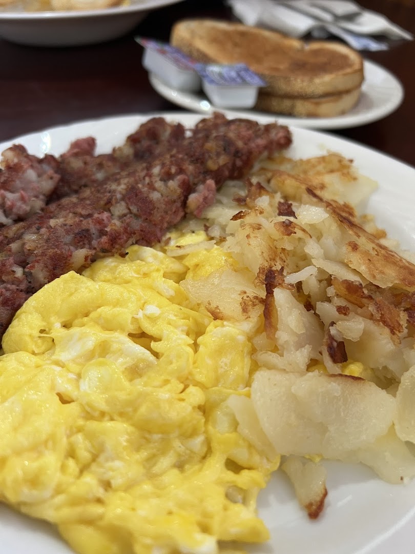 Omelettes, Potato Pancakes, Corned Beef Hash, Meatloaf, French Toast, Burgers, Sandwiches, Salads, Soups, Coffee, Tea, Cocktails, Beer, Wine