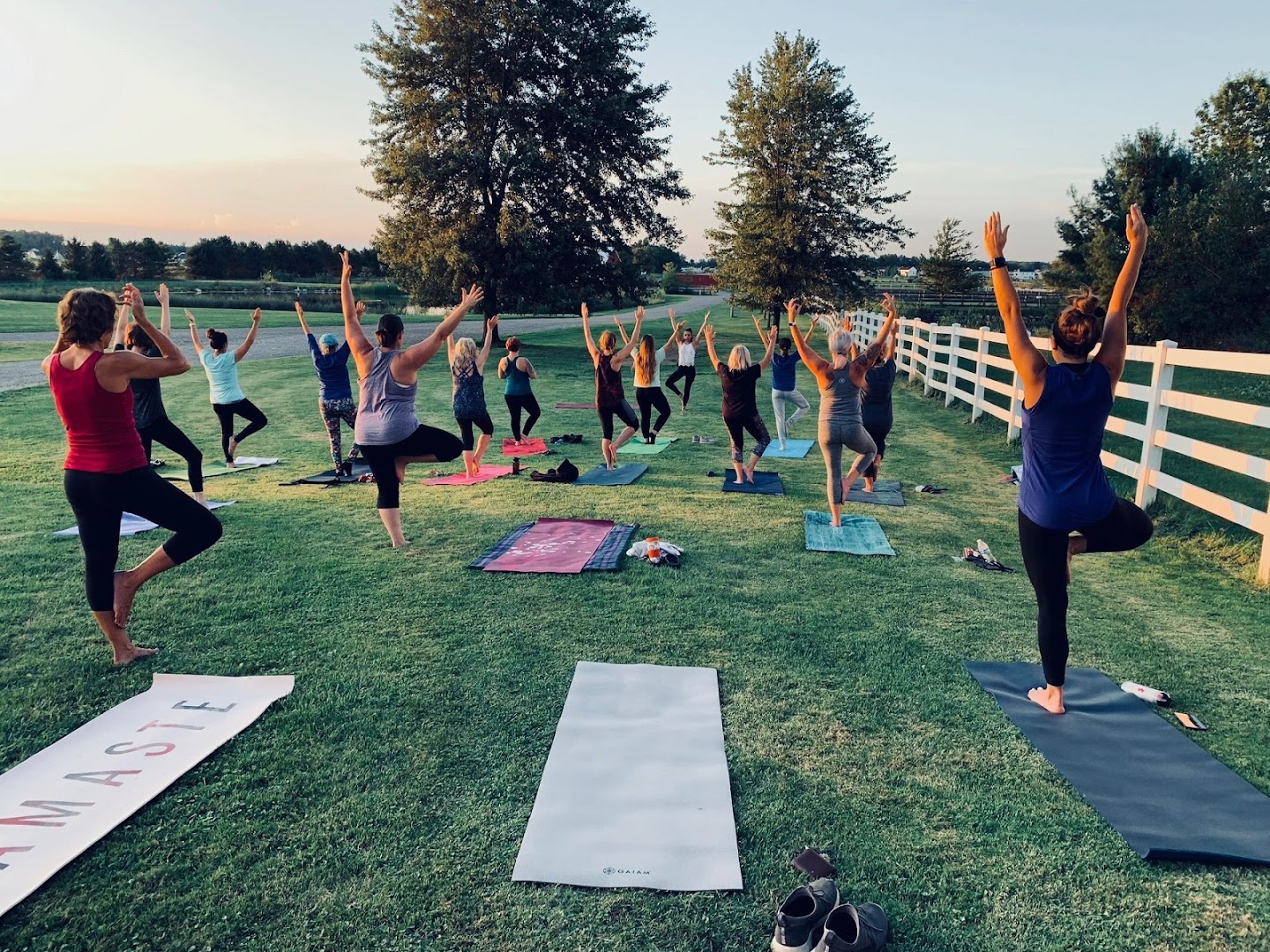 π Farm Setting: The yoga classes benefit from a calming natural farm environment that enhances relaxation and mindfulness.