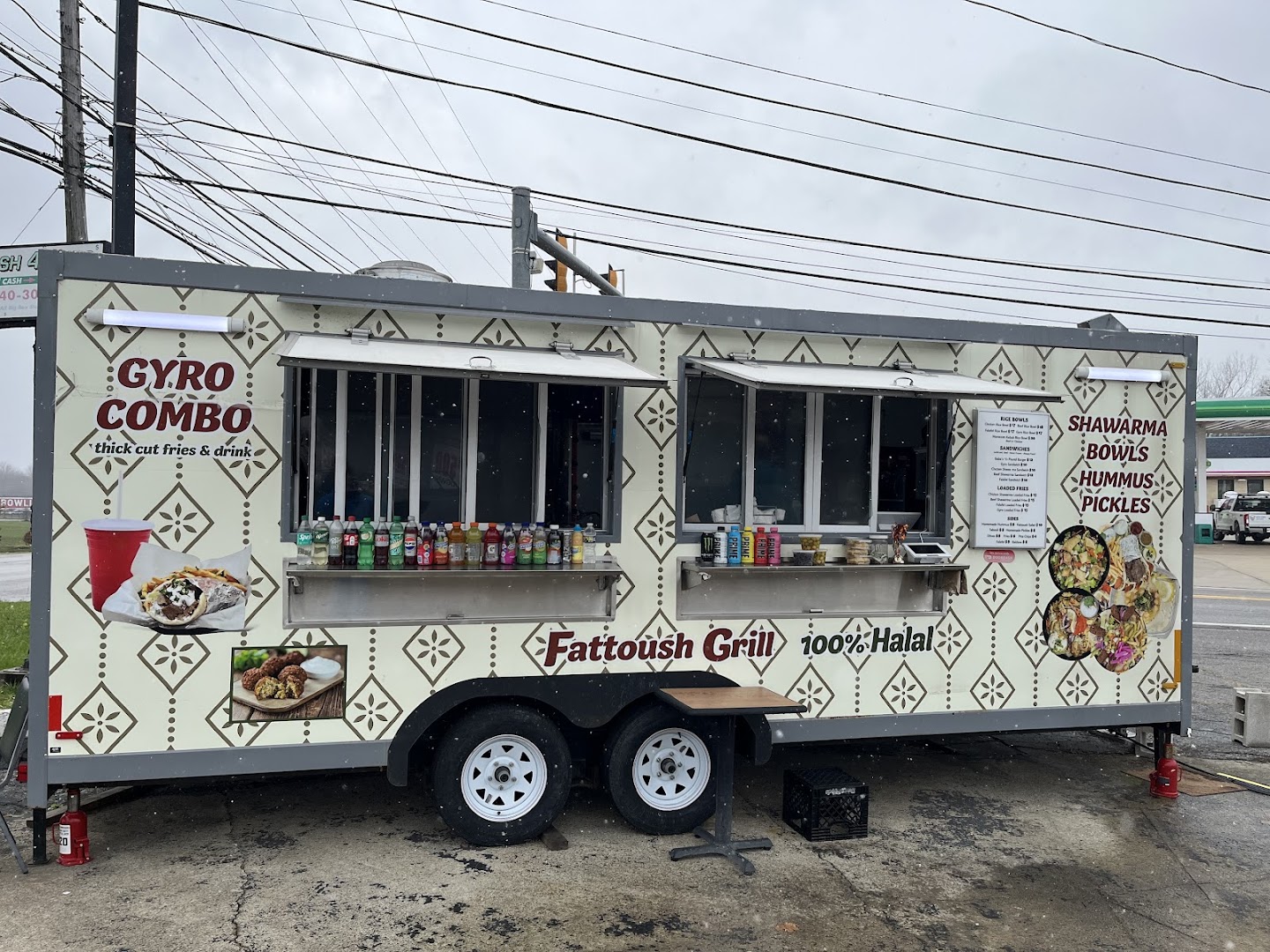 Chicken Shawarma Bowl, Gyro, Falafel Sandwich, Falafel Loaded Fries, Hummus, Pickled Vegetables, Shatta, Pita Chips, Fattoush Salad, Shawarma Fries