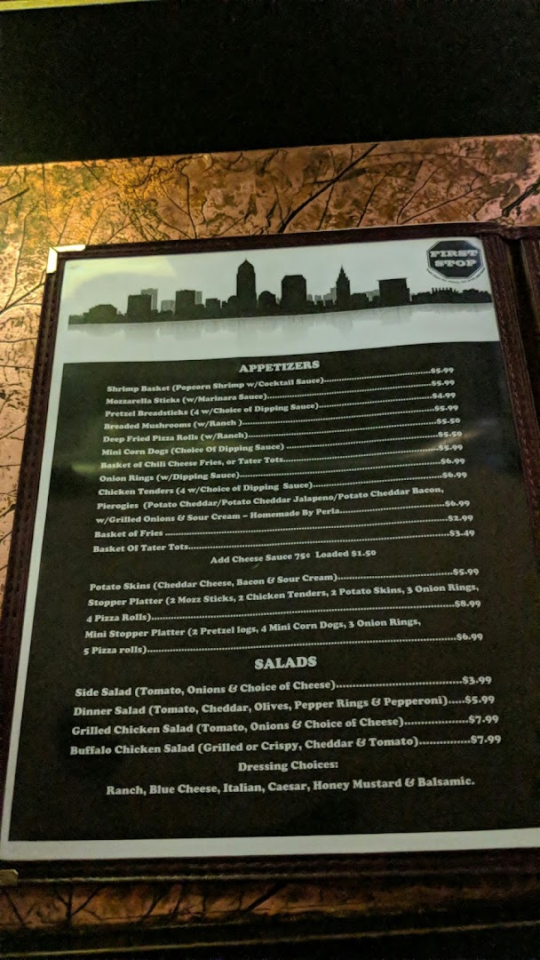 First Stop is praised for its friendly bartenders, cold beers, delicious wings, and reliable food specials, making it a beloved local bar. While most appreciate the welcoming atmosphere and timely service, a few mention occasional staff inattentiveness and sporadic rowdy customers as drawbacks.