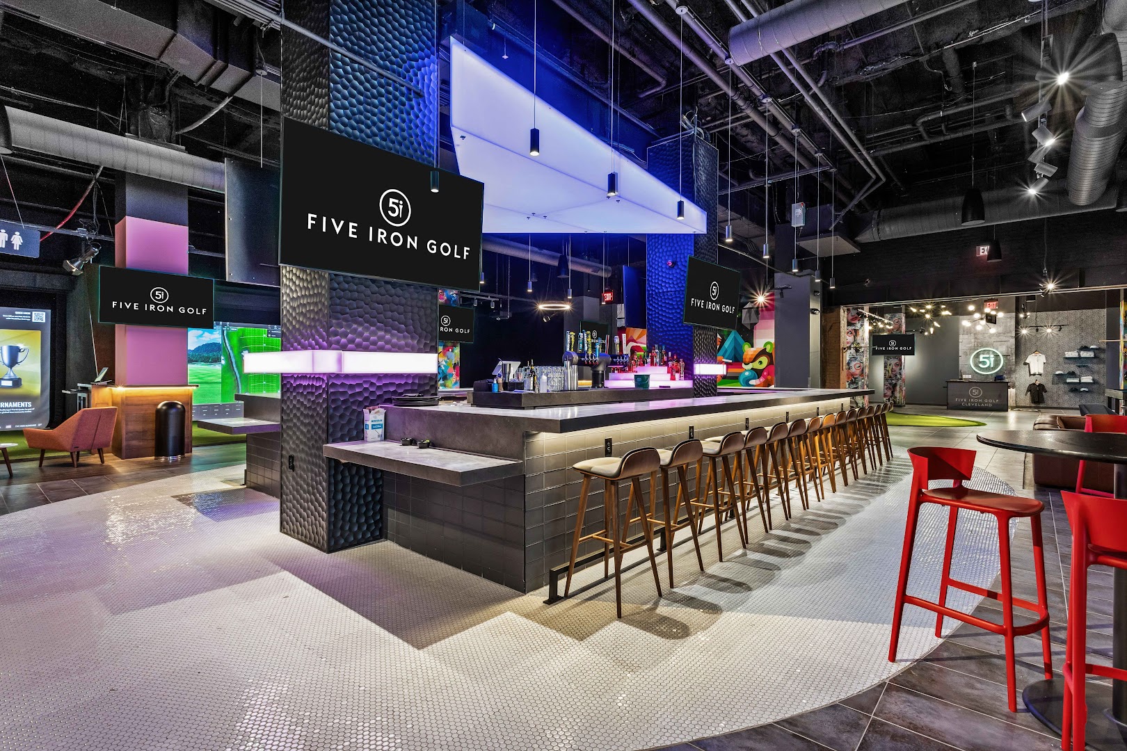 Five Iron Golf offers state-of-the-art indoor golf simulators equipped with Trackman technology, providing a fun and immersive experience for golf enthusiasts of all levels. The venue features a full-service restaurant and bar, live performances, and a welcoming atmosphere ideal for leagues, birthdays, or casual outings in downtown Cleveland.