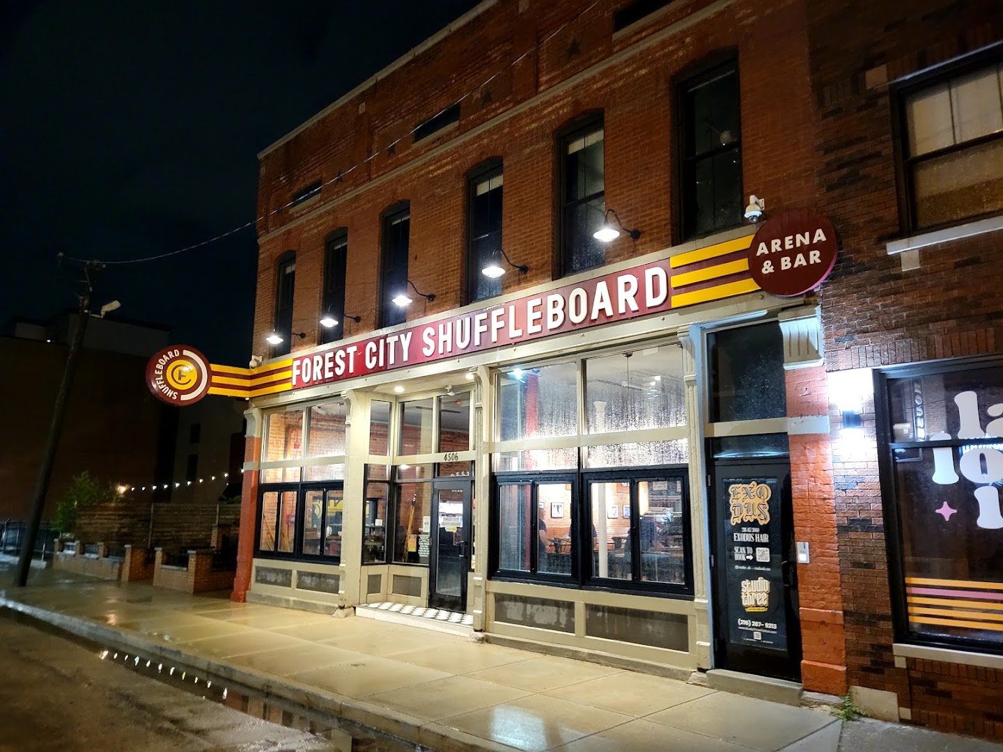 Forest City Shuffleboard Arena and Bar combines a unique indoor shuffleboard experience with a solid drink and food program, serving up American pub fare, local beers, and cocktails. Guests enjoy multiple TV screens for sports, a friendly atmosphere, and fast service that keeps the good times rolling regardless of group size.