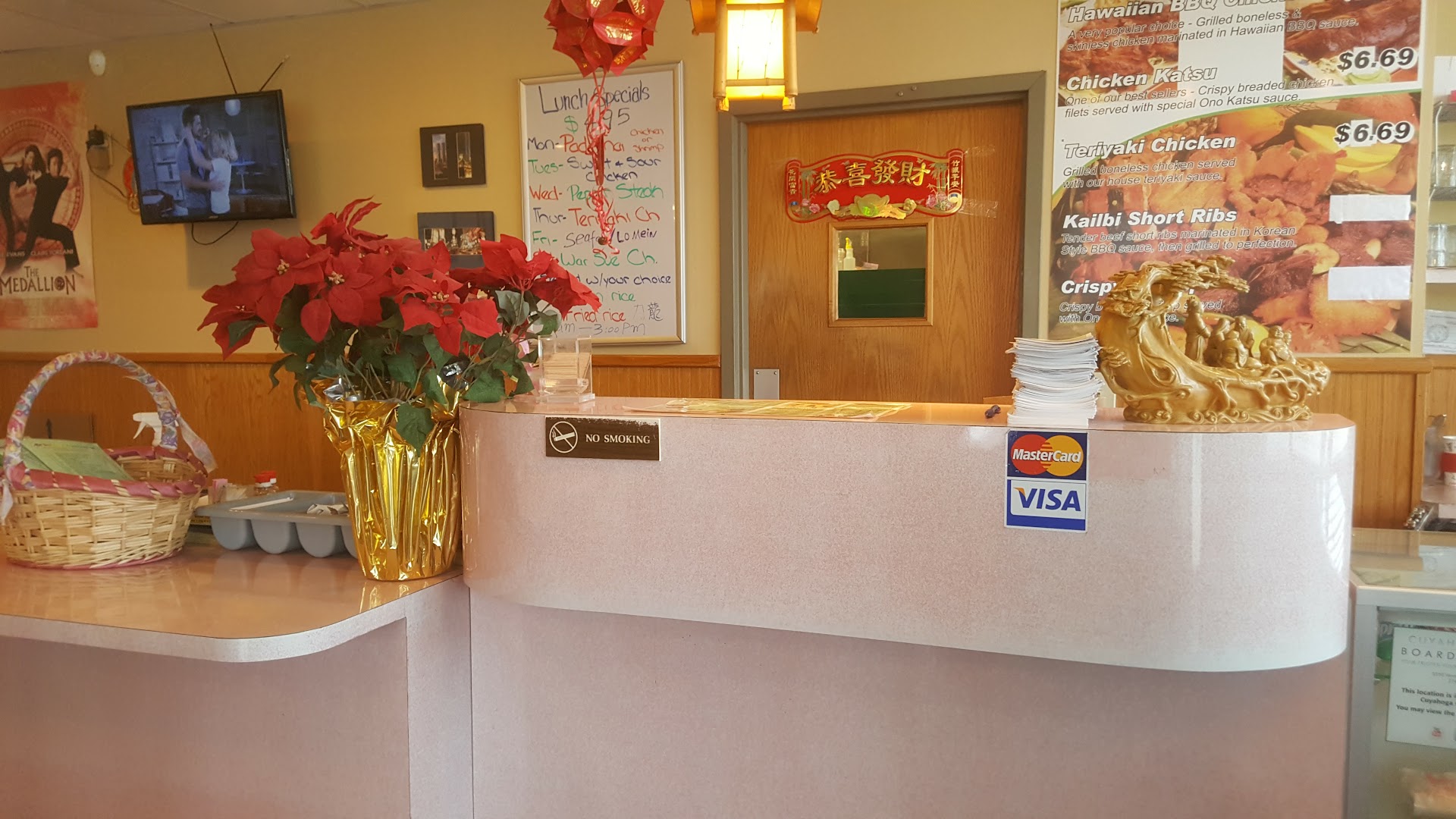 Sesame Chicken, Egg Rolls, General Tso's Chicken, Pot Stickers, Wonton Soup, Hibachi, Teriyaki, Sweet and Sour Chicken, Lemon Chicken, Fried Rice, Shrimp with Lobster Sauce, Chicken Fried Rice, Yu Shan Chicken