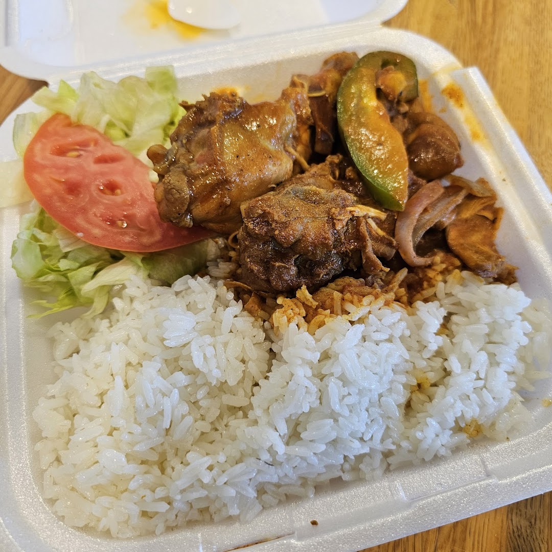 Mofongo, Stewed Goat, Yellow Rice and Beans, Fried Chicken, Chicharrón, Passion Fruit Juice, Pork, Rice and Beans, Tostones, Sweet Plantains, Pork Belly