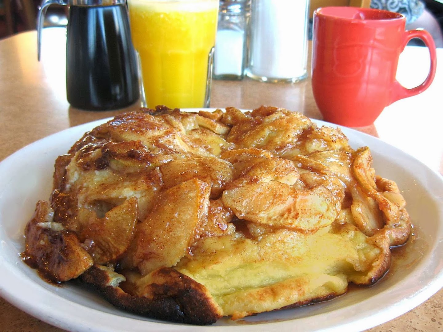 Buttermilk Pancakes, Apple Pancake, Pumpkin Pancakes, Blueberry Pancakes, Pecan Pancakes, Banana Foster French Toast, Dutch Baby, Eggs Benedict, Seafood Omelette, Home Fries, Bacon, Coffee, Tea