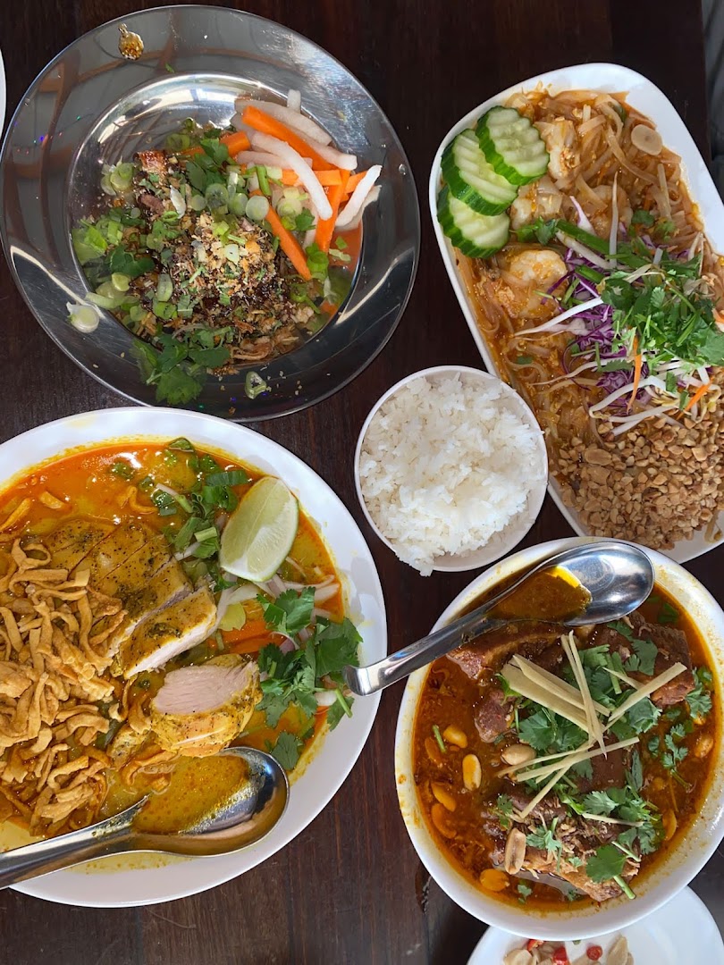 Khao Soi, Phat Thai, Gang Hung Ley Moo Pork Belly Curry, Brussels Sprouts, Spring Rolls, Sticky Rice, Tofu Dishes, Veggie Stir Fry, Egg Rolls, Pea Shoot Stir Fry, Chicken Fried Rice