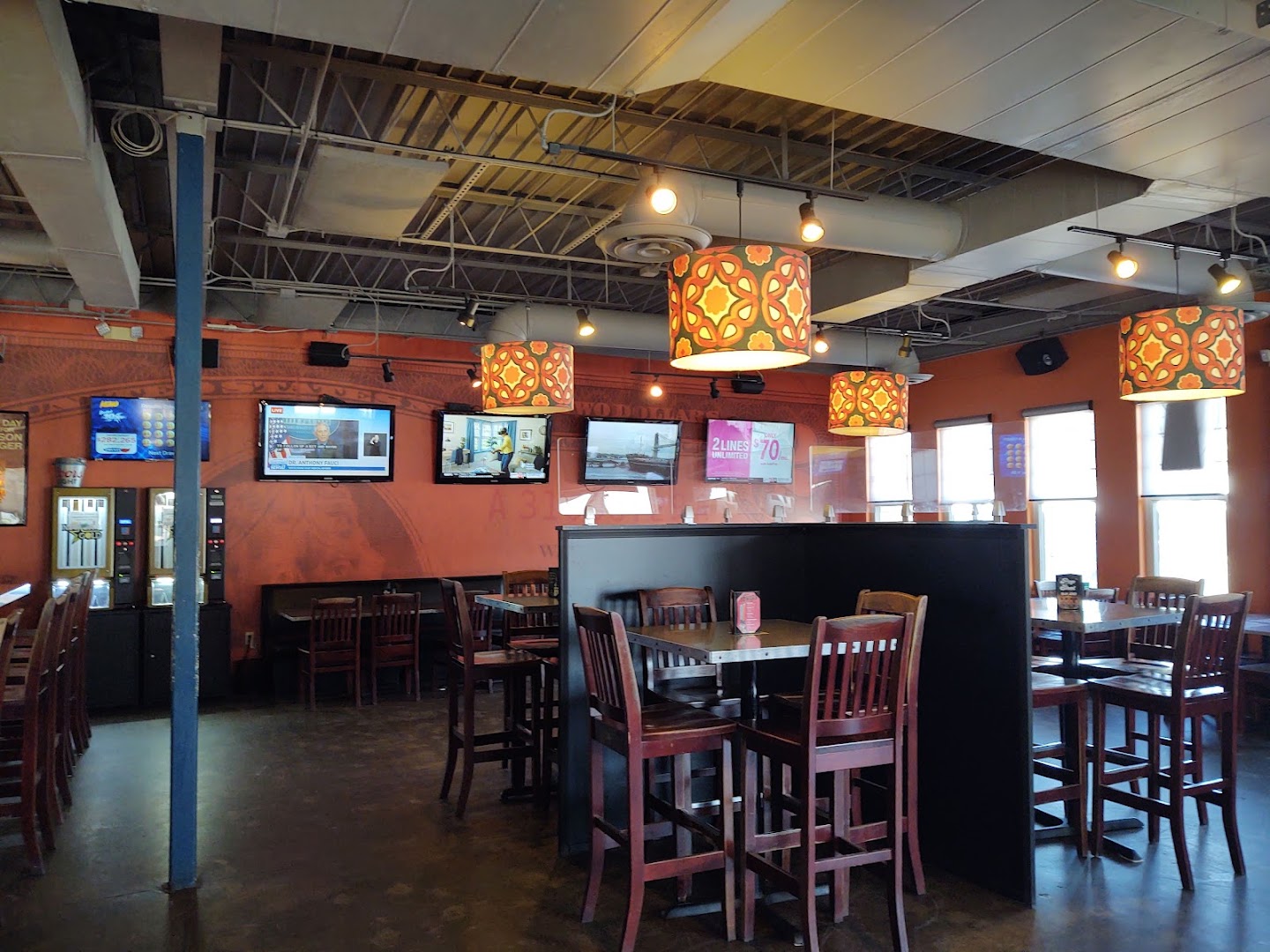 Vibrant sports bar and pizza spot with inventive pies, pickle bread, wings, and a lively atmosphere. Spacious with 20+ large TVs and a 25-seat center bar.