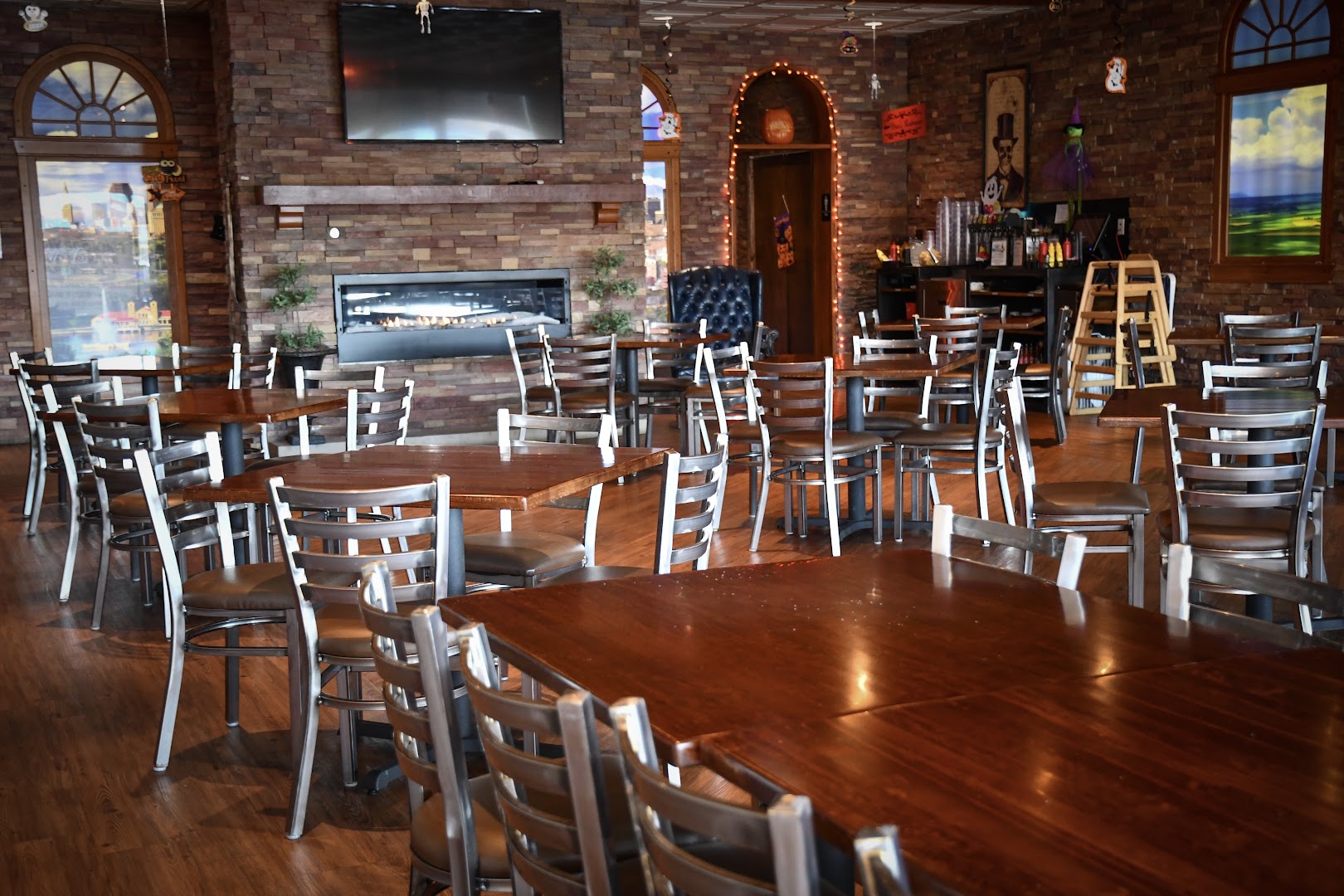 Guests enjoy fast service, a laid-back setting with a fireplace, local beers on tap, cocktails, and a welcoming family-friendly atmosphere.