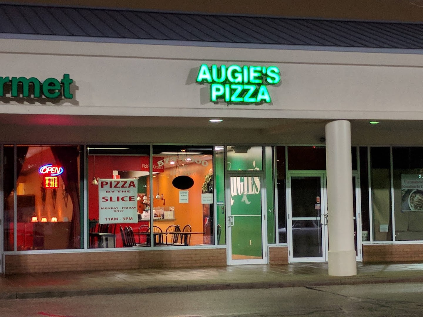 Augie's Pizza offers a casual dining experience focused on pizza by the slice, hearty sandwiches, pasta dishes, and well-reviewed wings.